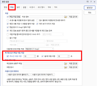 복구용 임시파일 무조건 자동저장과 복구용 임시파일을 쉴 때 자동저장이 있는데