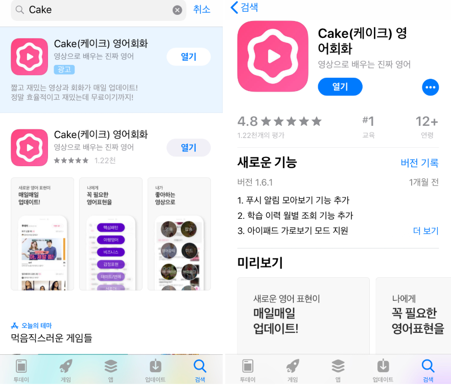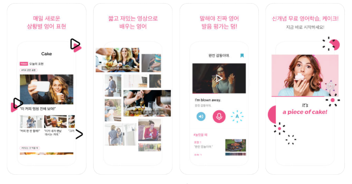 이제 정말 재밌게 영어공부하실 수 있겠쬬? ^^ 클립들이 짧아서 집중력 유지하기에 최고인!!! 케이크 앱 강추드립니다.