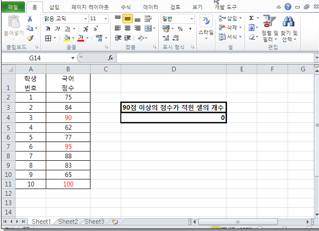 마지막으로 90점 이상의 점수의 개수가 카운팅된 것을 확인해보면,