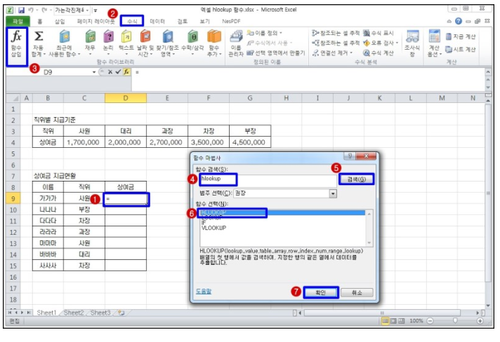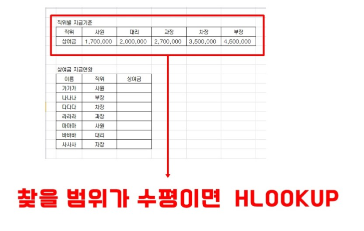아래와 같이 직위와 위의 직위가 일치하는 데이터를 찾아서 그 데이터에 해당되는 또다른 상여금을 찾아서 변환시켜주는 작업입니다!!