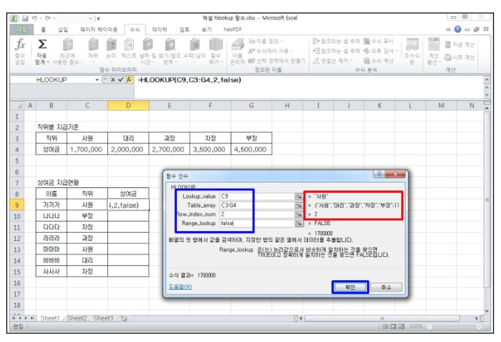 위 순서대로 엑셀의 HLOOKUP 함수를 사용해서