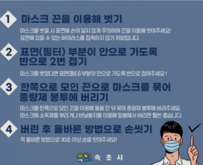 마스크를 쓰는것 만큼이나 폐기하는것또한 코로나예방에 매우 중요합니다