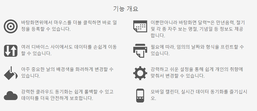 아무래도 바탕화면에 바로 나와있기 때문에 그때그때 일정을 바로 볼 수 있다는것이